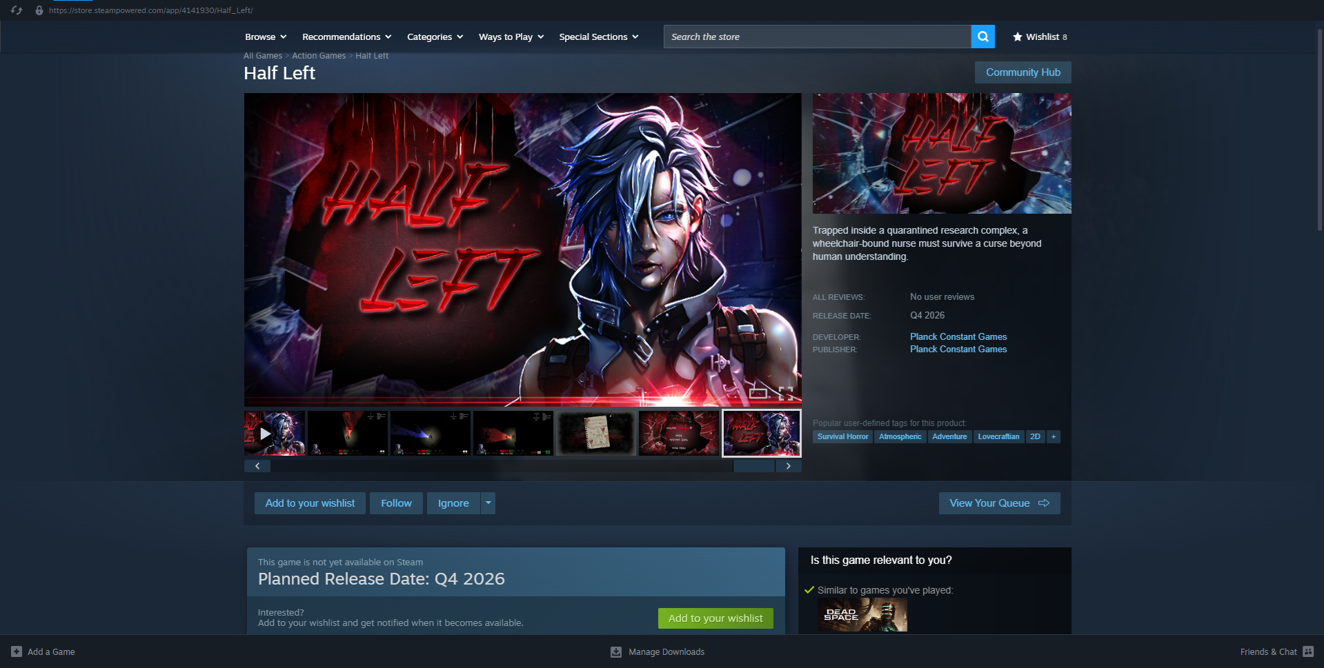 We’re excited to announce that the Steam Page for Half Left is officially live. This is a big milestone for the project, and we’re glad to finally share it with you.